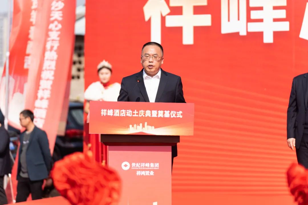 仪式开始,集团董事长许刚丈发表了热情洋溢的讲话。他表示,在市、区两级政府的大力支持下,本着回馈家乡的初衷,集团将全力以赴推进祥峰酒店暂用名建设工作,打造湘南地区酒店标杆,引领衡阳酒店行业二十年。